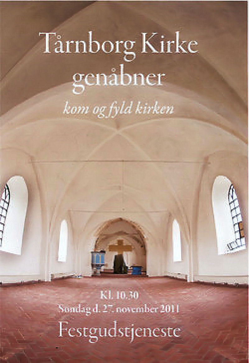 Nu genåbner Tårnborg Kirke efter restaureringen med en festgudtjeneseste Søndag den 27. november 2011 kl. 10.30.