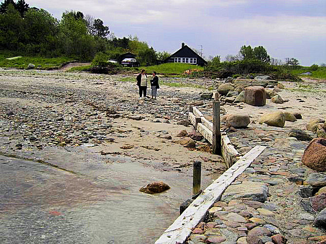 Terrænreguleringer. Jordbjergene tættere på. Huset helt nede ved strandkanten er Gry´s og har ligget der i mange år. Lovligt opført.