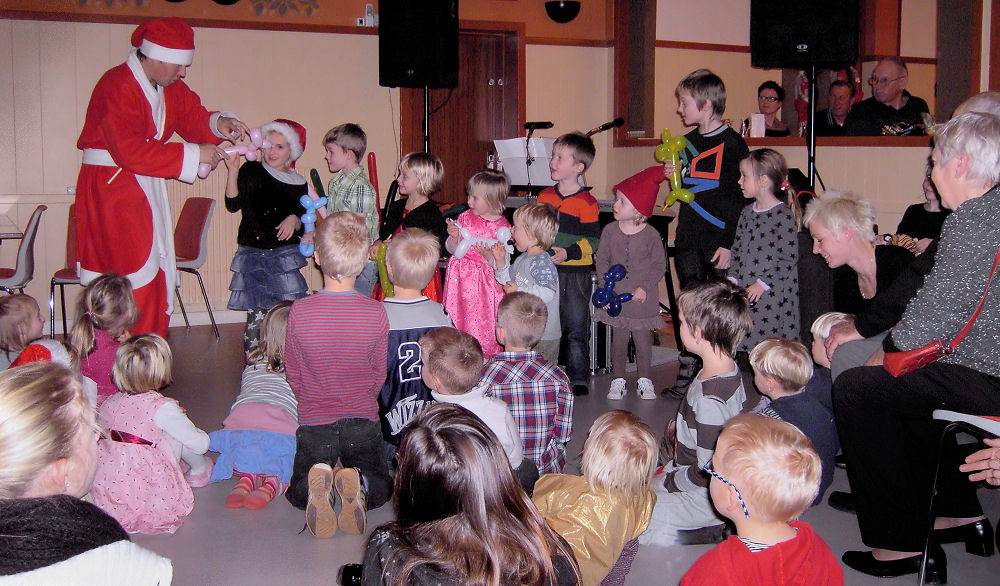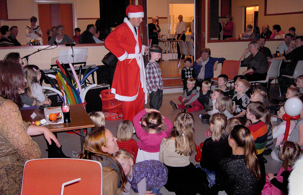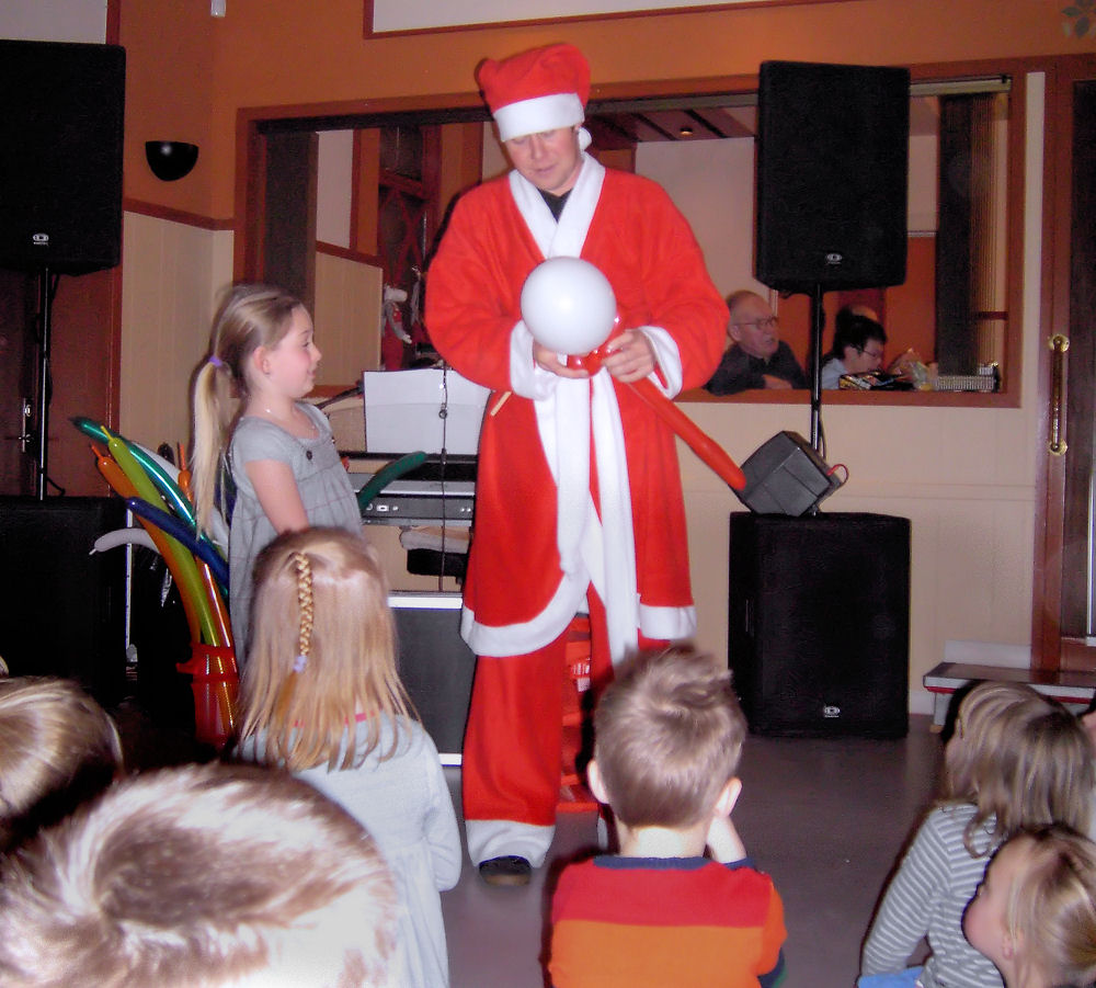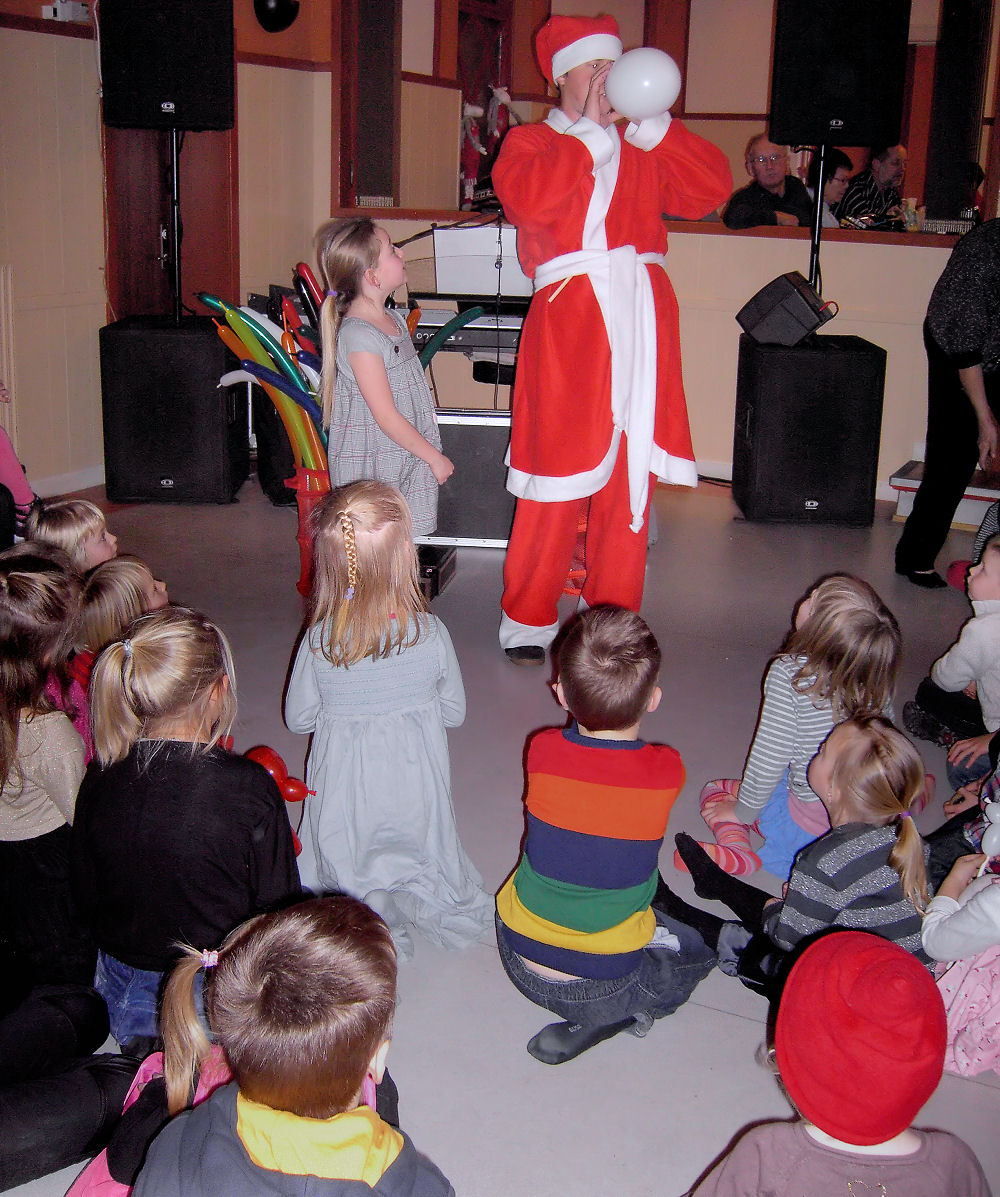 VOR FORENING SPONSORER BALLONKONGEN KRISTOFFER DER KOMMER SOM JULENISSE OG TRYLLER OG LAVER BALLONDYR TIL BØRNENE