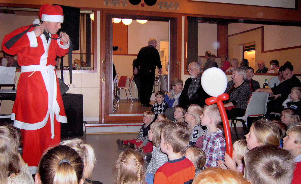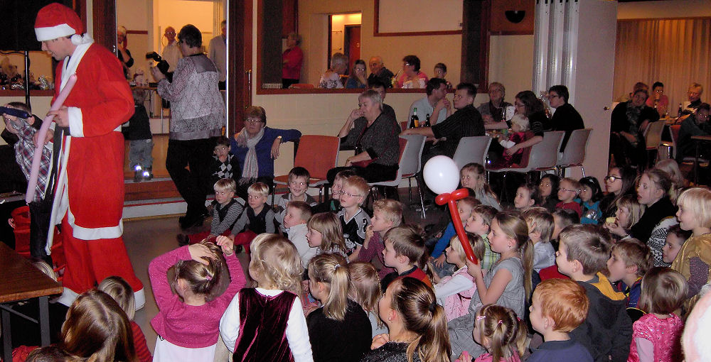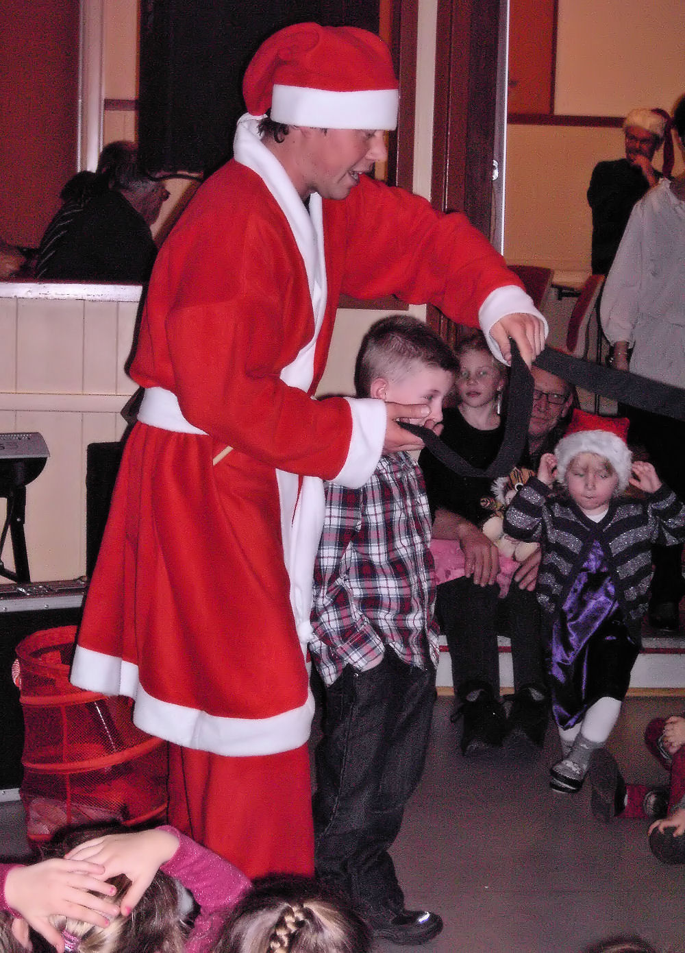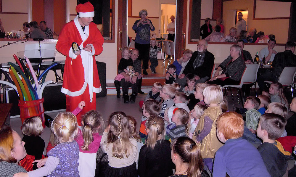 VOR FORENING SPONSORER BALLONKONGEN KRISTOFFER DER KOMMER SOM JULENISSE OG TRYLLER OG LAVER BALLONDYR TIL BØRNENE