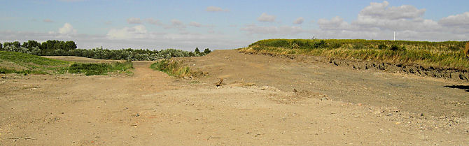 Marken lige vest for Kartbanen ved indkørslen til fyldpladsen. Kællingehoved til højre og Halsskov vandtårn ude i horisonten.