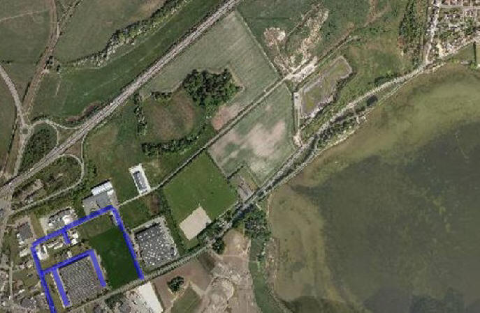 Luftfoto der viser indgangen til fyldpladsen og Kartbanen. (med målestok).