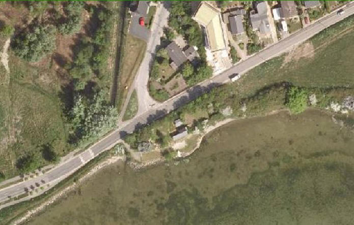 Beplantning fjernet. Vejen/cykelstien udvides mod vandside.