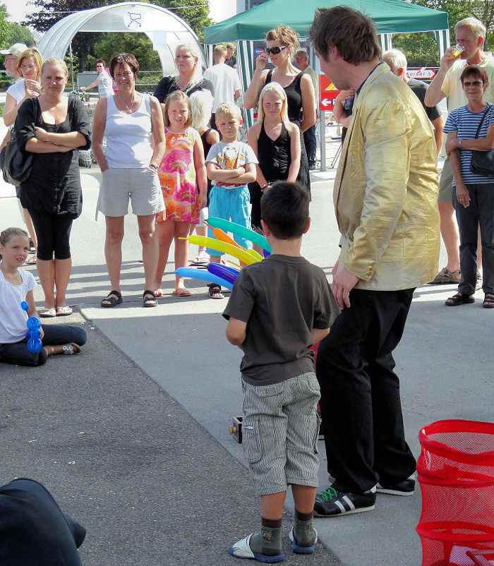 Det er spændende at være med og hjælpe ballonkongen, men besværligt når man skal holde en giraf i den ene hånd.