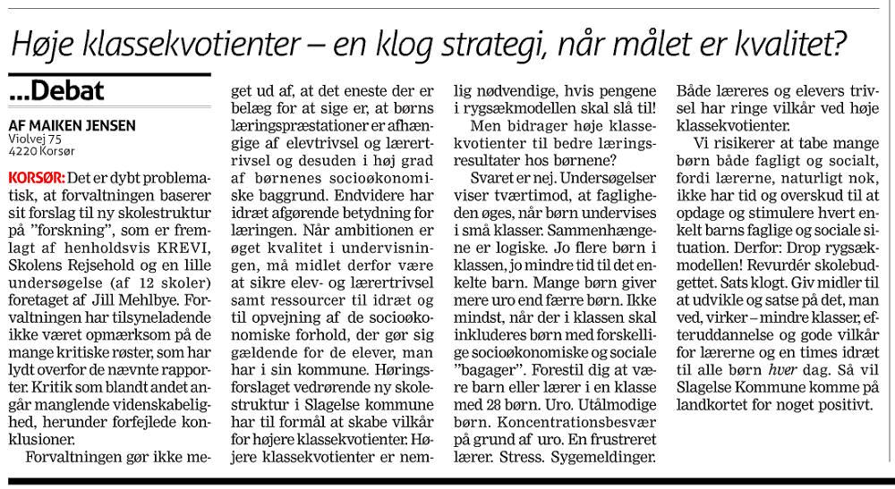 Det kan være morsomt, at kende lidt tilhvordan man tidligereændrede skolepolitik i den gamleKorsør kommune.Her er en artikel bragt afInformations internetavis - webmaster